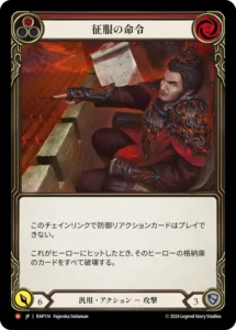 伝説(デッキに1枚のみ「アタヤの威光」を入れることができる) これをピッチしたとき、このターン、対戦相手が防御リアクションカードをプレイするためのコストは